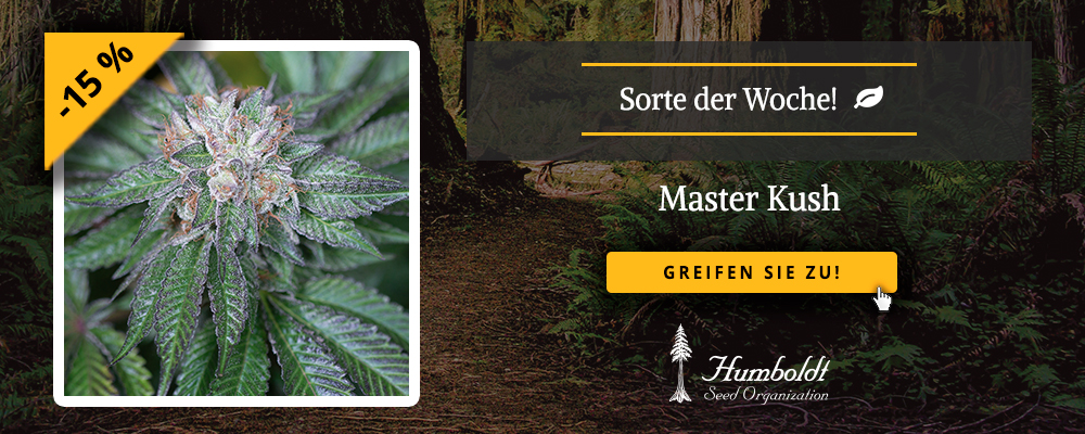 Master Kush ist ein absolutes Muss für Indica-Fans. Mit ihrer schnellen Blüte, robusten Statur und herrlich entspannenden Wirkung wird diese Pflanze alle Grower im Sturm erobern, die eine gegen trockene Klimas resistente Sorte brauchen. Lasst sie euch nicht entgehen: Noch bis zum 24. September könnt ihr sie euch mit 15 % Rabatt auf alle Samen-Packs holen!