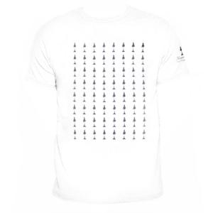 Das Humboldt-Logo-T-Shirt weiß ist ein flottes, auf der Vorderseite per Siebdruck mit schwarzen Mammutbäumen bedrucktes weißes Baumwoll-T-Shirt.