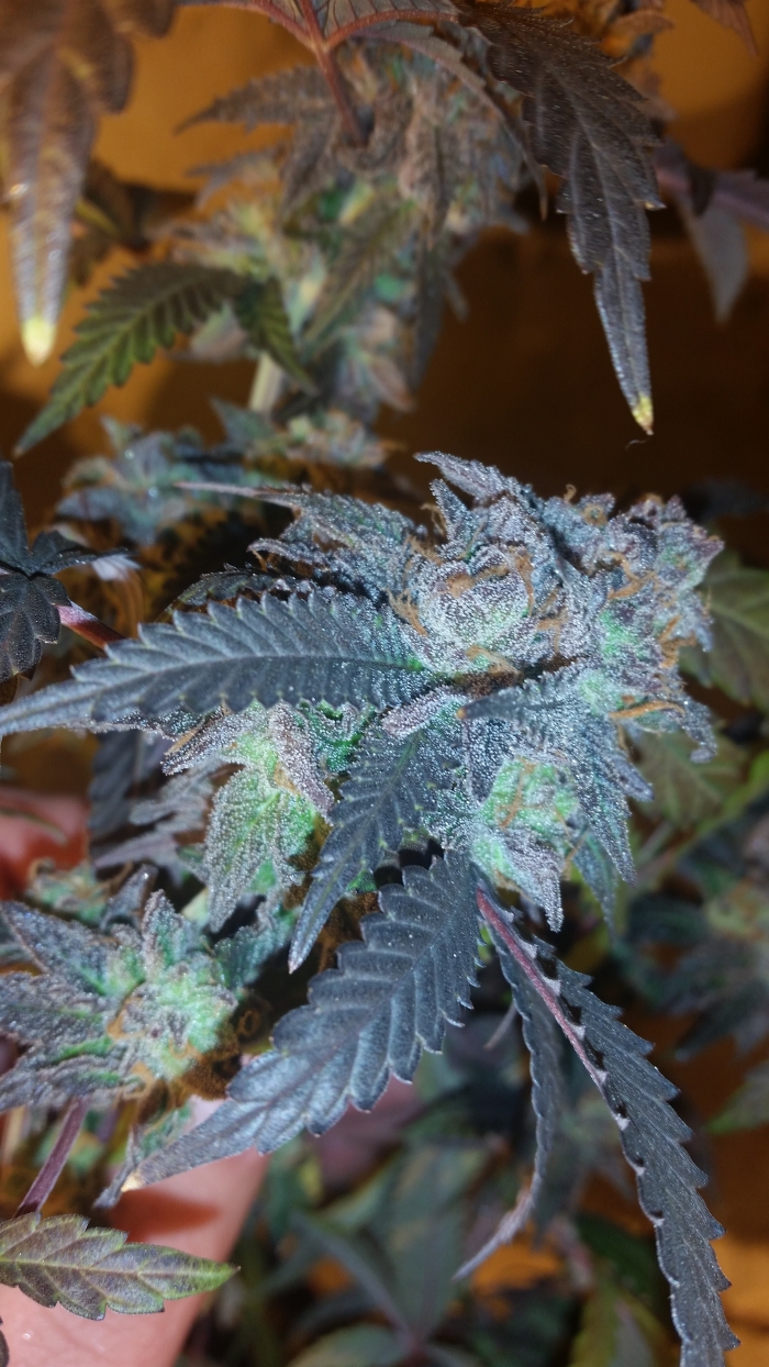 Otra planta de Chocolate Mint OG con la que quitarse el sombrero. Sus hojas negras remiten al chocolate más puro, en contraste con el verde menta de sus cogollos cubiertos de resina. ¡¡Con sólo verla, dan ganas de meterle un mordisco!!