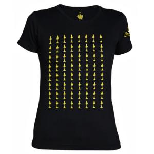 La camiseta chica Humboldt es una bonita camiseta negra que lleva el logotipo de las secuoyas serigrafiado en color amarillo en la parte de delante.