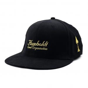 La gorra Flat Cap tiene un diseño actual y es muy cómoda de llevar; está fabricada en tejido de algodón de color negro y en la parte frontal tiene bordado el nombre Humboldt Seed Organization en color amarillo. En uno de los laterales lleva un bonito detalle de la famosa secuoya que es el logotipo de HSO.