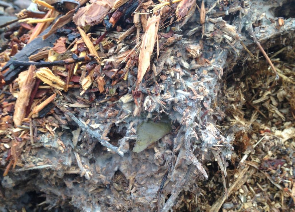 Un mélange de résidus locaux de jardinage, qui devra être séparé et appliqué en couches dans le tas. Ce matériau provient d'en face de là où il a été assemblé.