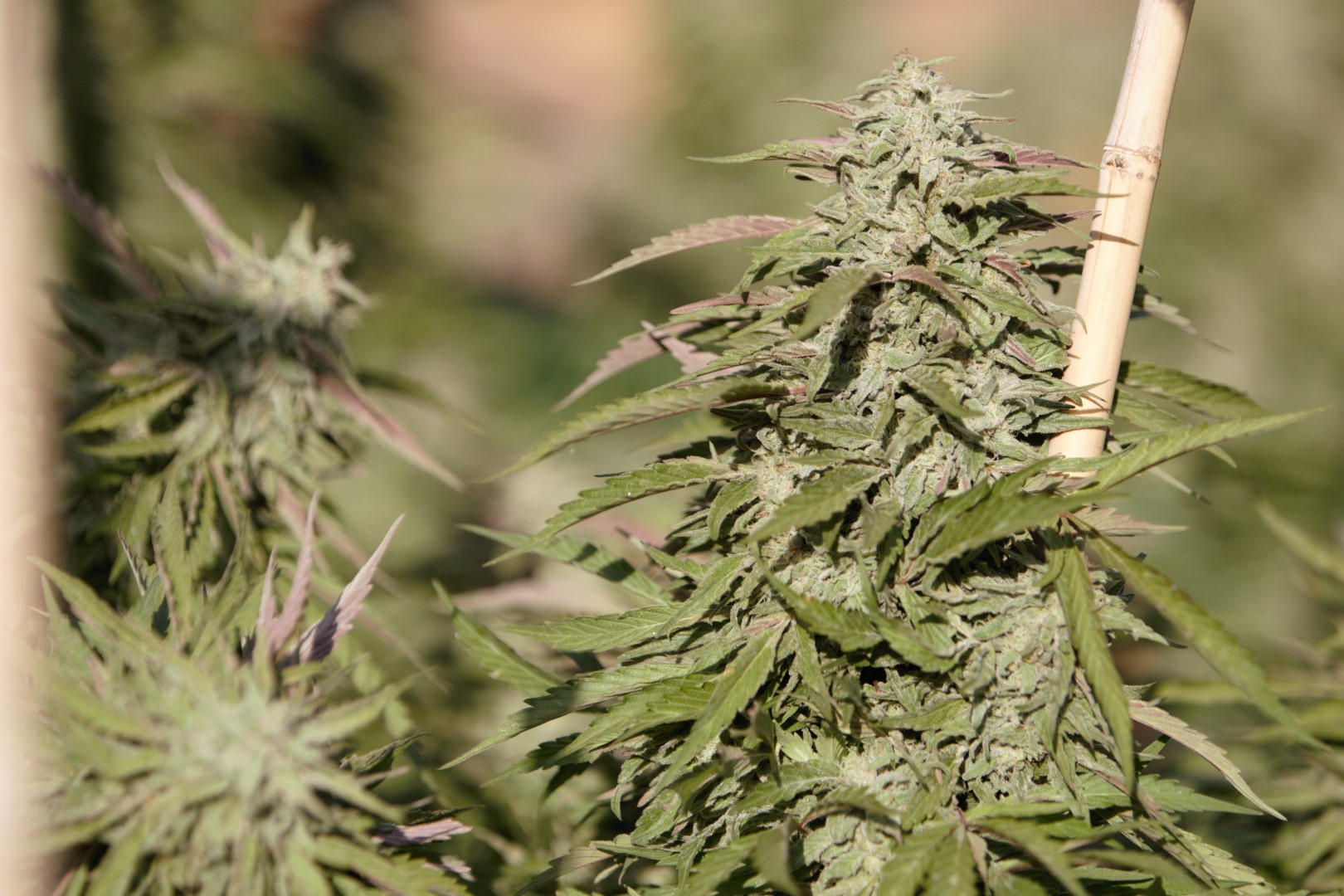 La croissance végétative est rapide dès le début, car très peu de temps est nécessaire pour entrer dans la période de floraison. Les feuilles en éventail disposent de grands espaces entre les points nodaux et permettent une pénétration profonde de la lumière. Le palissage est toujours conseillé, car les grands sites de culture pourraient nécessiter l'aide d'une double couche. En tant que consommatrice avide de nitrogène et grâce à un métabolisme fort dans son ensemble, la Purple