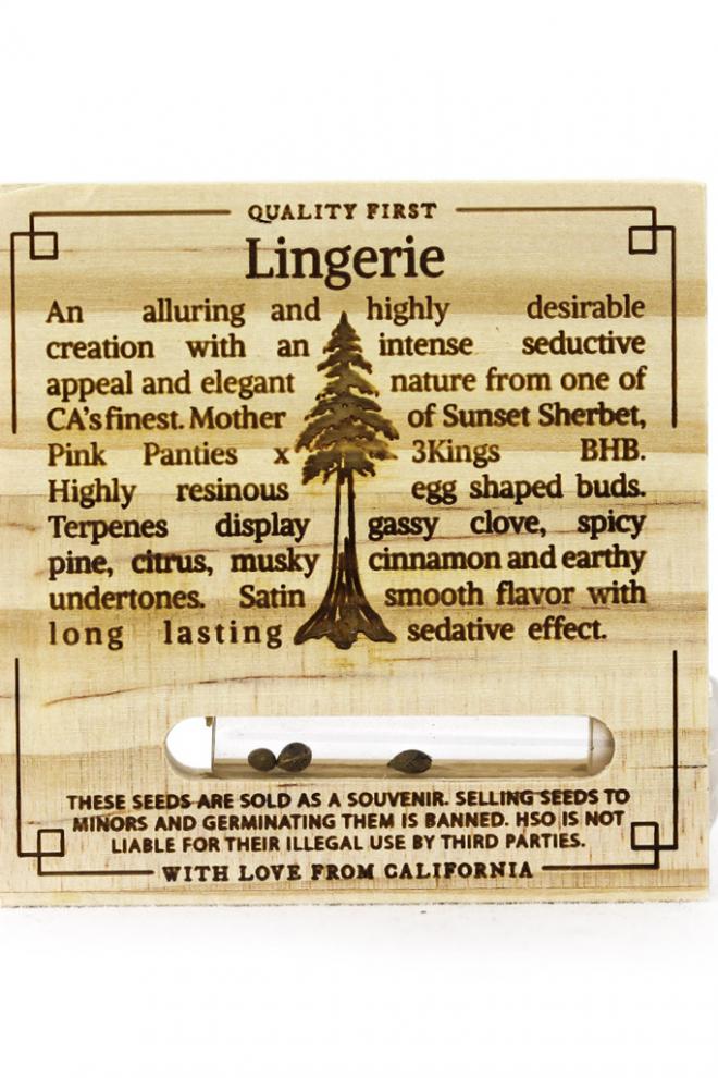 La croissance végétative de la Lingerie est assez courte, mais lors du passage en floraison, elle doublera de volume. Ses feuilles fines et d'aspect Sativa entourent des fleurs volumineuses. Le développement explosif du calice se traduira par des têtes allongées et arrondies comme des œufs très résineux. Son profil terpénique dégage des senteurs semblables aux clous de girofle et au pin, accompagnées d'arômes d'agrumes, de cannelle et de terre. Une saveur délicate et un effet puissant, durable et relaxant qui stimulera la créativité, pour un excellent moment de détente en fin de journée. Son aspect séduisant et son caractère captivant en feront un hybride incomparable combinant à merveille des caractéristiques indispensables pour les cultivateurs de cannabis. Pendant tout son cycle de vie, la plante aura une croissance verticale rapide et vigoureuse, c'est pourquoi il est recommandé d'avoir recours à une alimentation importante afin de répondre à ses grandes exigences métaboliques.